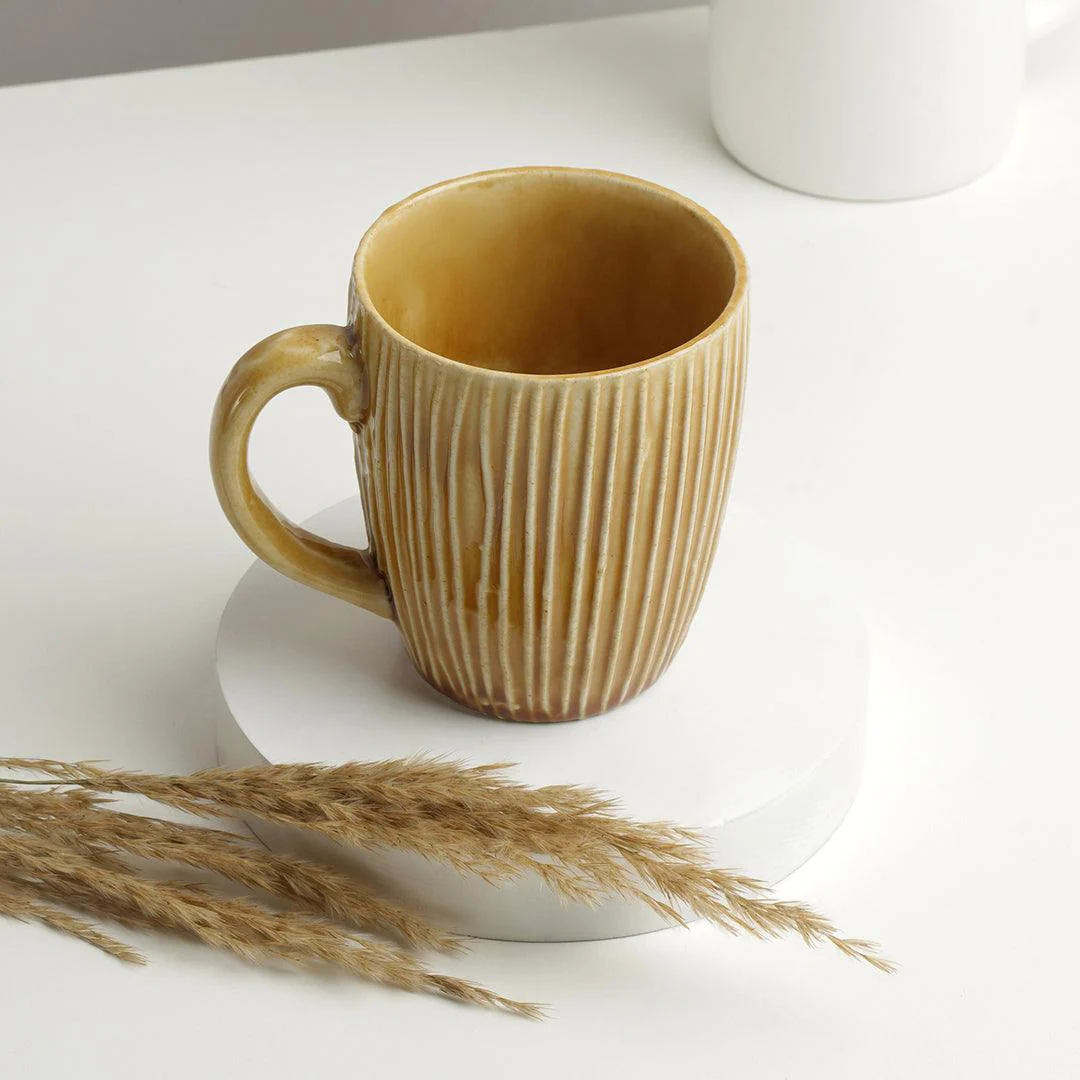 Add a bit of texture to your morning tea or evening coffee with this ceramic mug that comes with a vertical texture on the surface. The texture on the body elevates this otherwise everyday looking mug into something special.