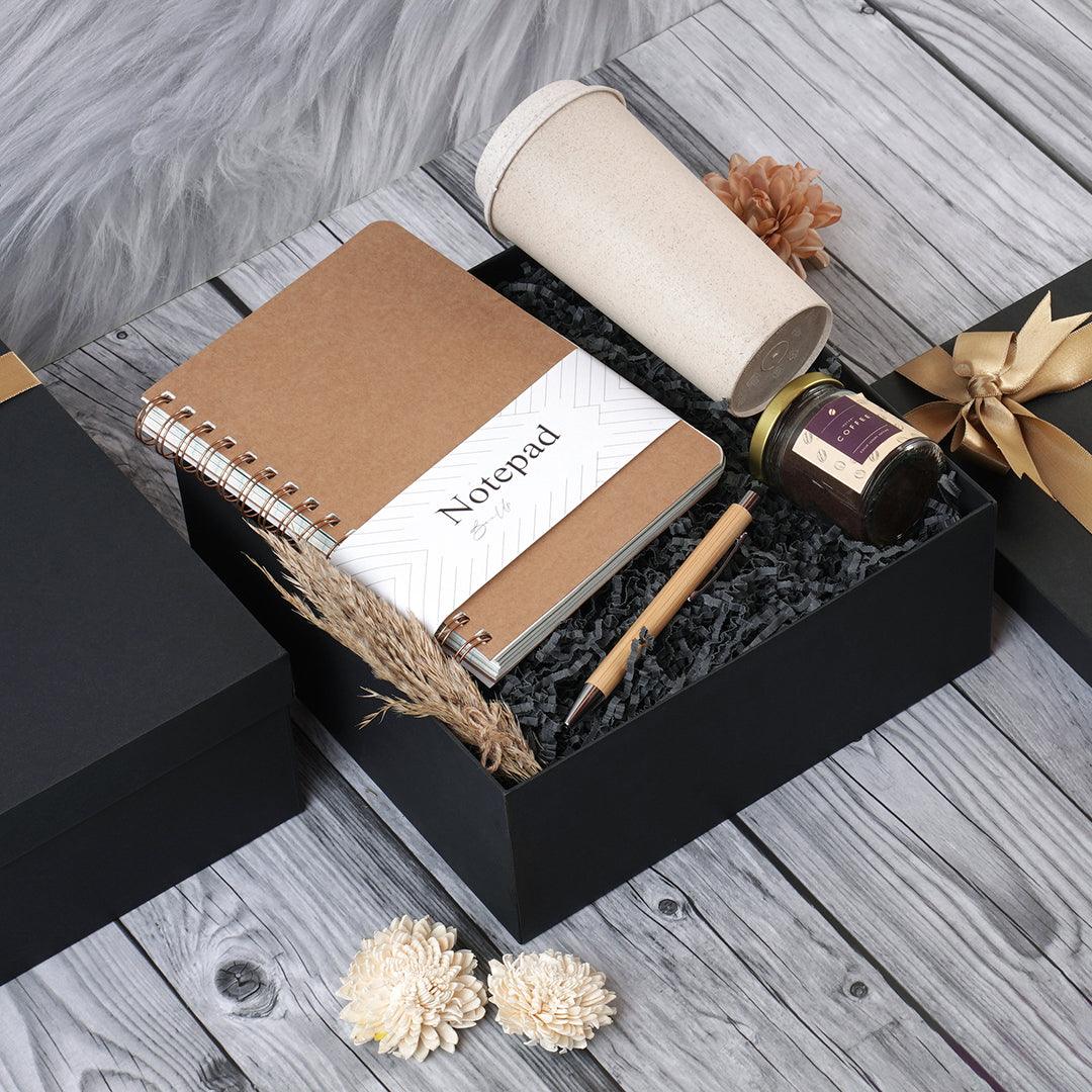 The beginning of the new year is the time when we decide to start fresh new habits that will help us make healthy changes in our life. This hamper is here to help you inculcate the mindful and thoughtful habit of journaling with and note-taking, a habit that will help you stay grounded and mindful about your life. The hamper also contains a blue ink ball pen that comes in a bamboo finish. The hamper is completed with a jar of coffee powder and a wheat straw coffee sipper that is tall, stylish and easy to use.
