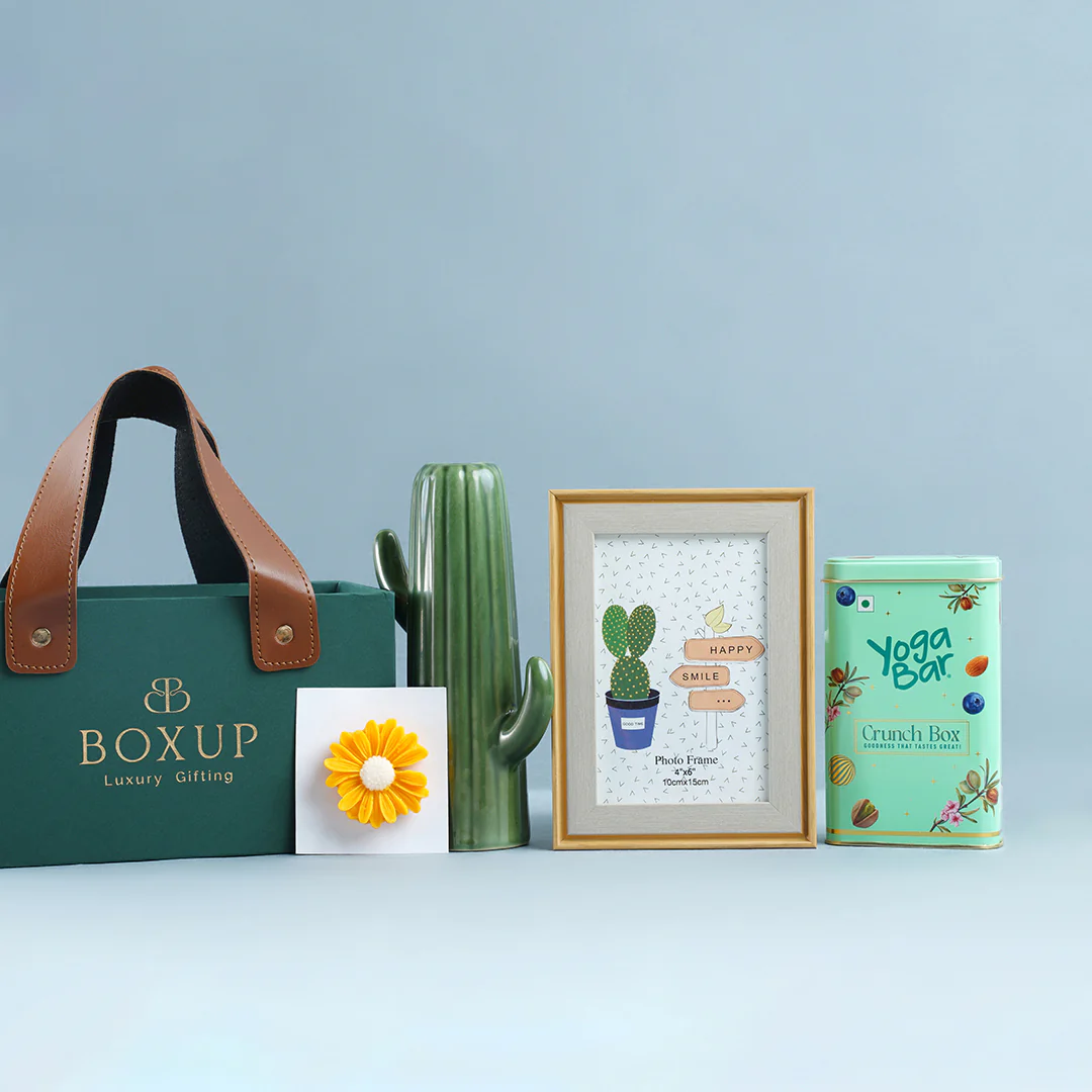 Featuring a charming cactus showpiece and curated calming additions, it’s a slice of zen in a box. Ideal for desk spaces, mindful gifting, or just brightening someone’s day.